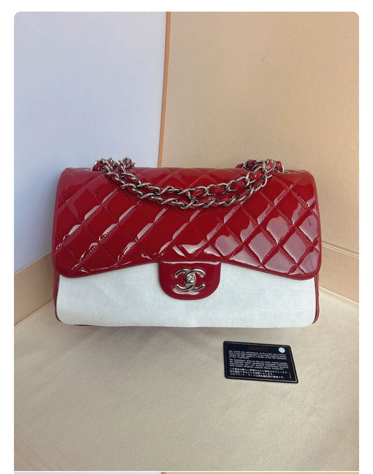 Chanel Classic Jumbo Flap Bag in Red Patent Leather