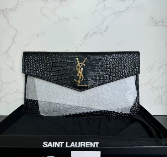 Saint Laurent Uptown Crocodile-Embossed Leather Clutch Brand New